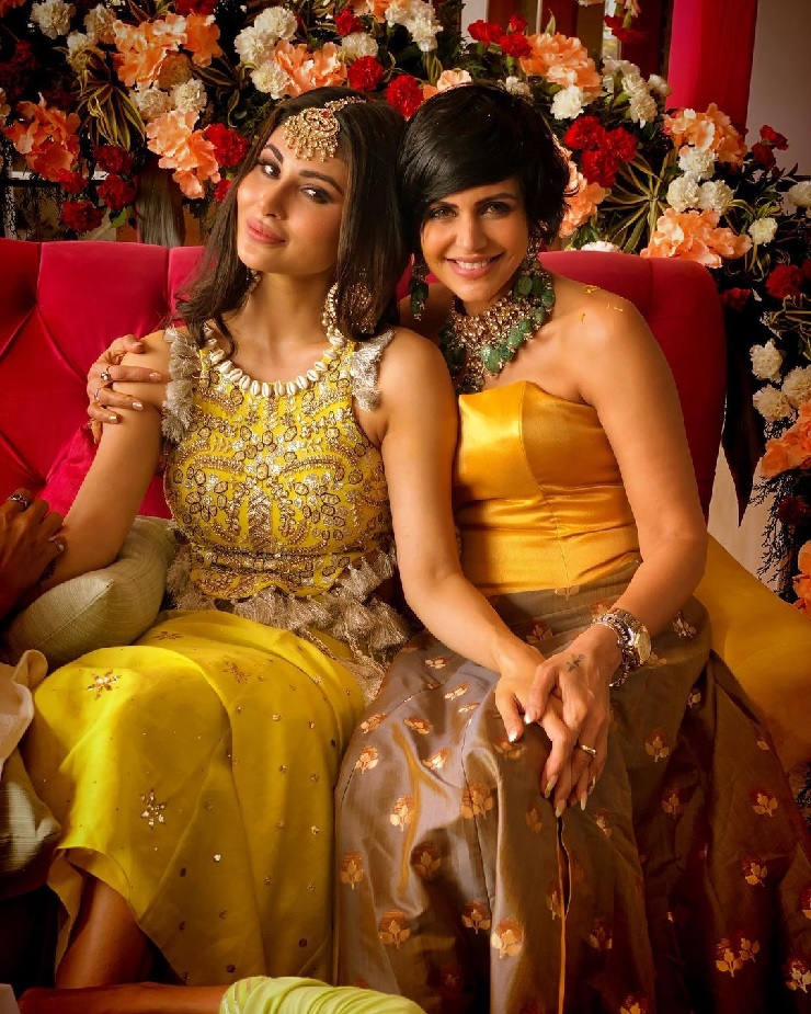 (फोटो साभारः Instagram @mandirabedi) टीव्ही मालिका अभिनेत्री मौनी रॉय तिच्या दीर्घकाळाच्या बॉयफ्रेंडसोबत लग्न करणार आहे. अभिनेत्रीच्या लग्नाचे विधी आतापासूनच सुरू झाले आहेत. ज्याची झलक आता हळूहळू सोशल मीडियावर समोर येत आहे. टीव्हीच्या जगातील सुपरहिट शो नागिनमध्ये मुख्य भूमिका साकारून प्रसिद्धीच्या झोतात आलेली मौनी रॉय गोव्यात लग्न करणार आहे. जिथे हळदी आणि मेहंदीचे विधी पूर्ण झाले आहेत. मौनी रॉयच्या मेहंदी आणि हळदीचे नवीनतम फोटो येथे पहा.