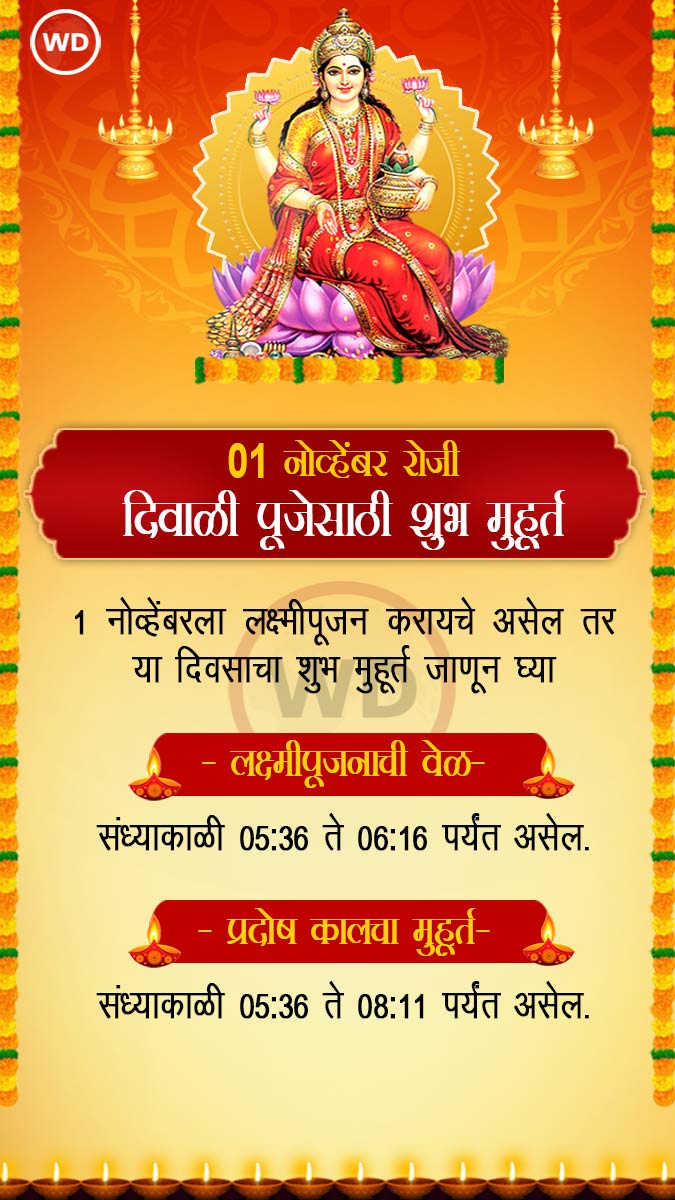 01 नोव्हेंबर रोजी दिवाळी पूजेसाठी शुभ मुहूर्त -