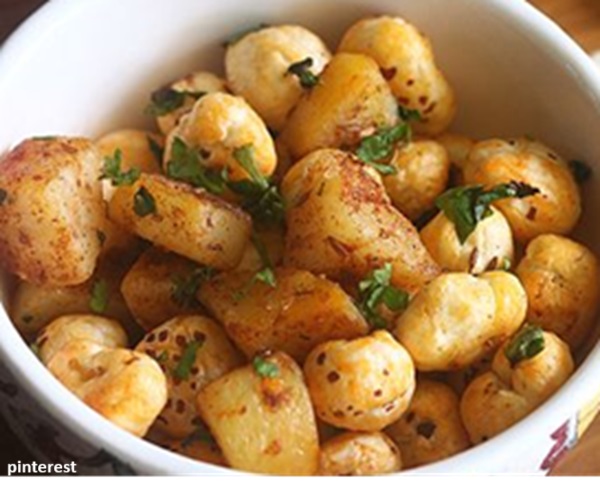 सर्वात आधी एका पॅनमध्ये १ चमचा तूप घाला, त्यात मखाने घाला आणि मंद आचेवर सोनेरी आणि कुरकुरीत होईपर्यंत भाजून घ्या. व बाजूला काढून ठेवा. आता त्याच पॅनमध्ये आणखी थोडे तूप घाला. त्यात जिरे घाला, नंतर हिरव्या मिरच्या घाला. उकडलेले आणि चिरलेले बटाटे घाला आणि २-३ मिनिटे हलके परतावा. आता रॉक मीठ आणि थोडी काळी मिरी पावडर घाला. सर्वकाही चांगले मिसळा. आता भाजलेले मखाने घाला आणि १-२ मिनिटे चांगले मिसळा जेणेकरून मसाले भाजीला लागतील. आता वरून कोथिंबीर घाला व लिंबाचा रस घालावा. तर चला तयार आहे उपवासाची बटाटा मखाना भाजी रेसिपी, गरम नक्कीच सर्व्ह करा.