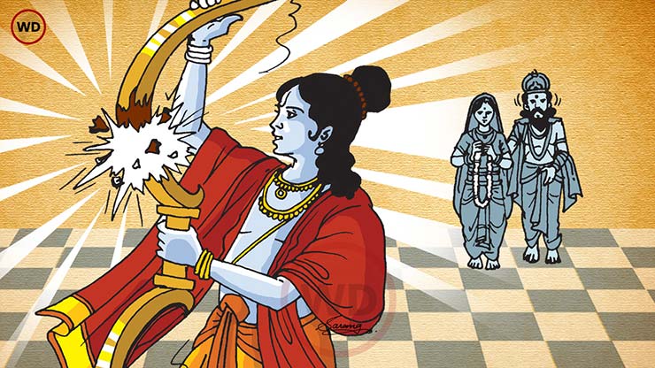 4. यानंतर विश्वामित्र श्री राम आणि लक्ष्मण यांना जनकपूर येथील सीता स्वयंवरात घेऊन जातात. तेथे भगवान श्रीराम शिवजींचे पिनाक धनुष्य तोडतात.
