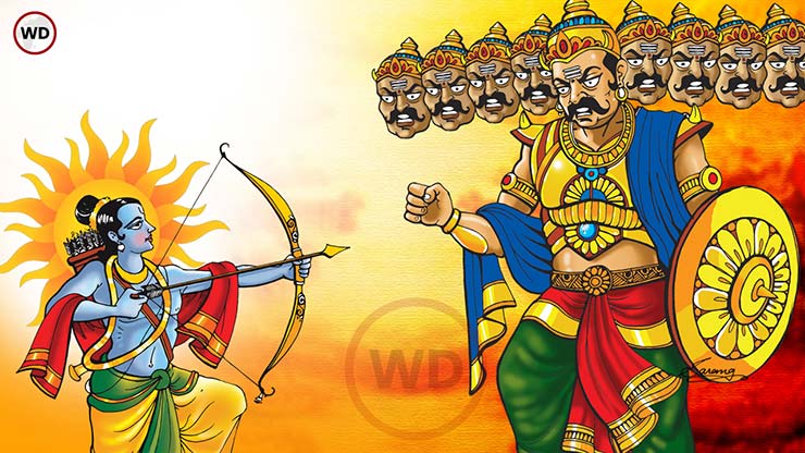 24. यानंतर राम आणि रावणात घनघोर युद्ध होते. विभीषणाच्या सूचनेनुसार, श्री राम रावणाच्या नाभीत बाण सोडतात आणि नंतर रावणाचा वध केल्यानंतर, प्रभू श्रीराम पुष्पक विमानात पत्नी सीता आणि भाऊ लक्ष्मण यांच्यासह अयोध्येला परततात.