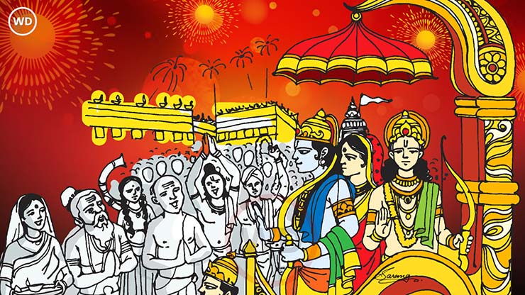 25. अयोध्यामध्ये प्रभु श्री राम, लक्ष्मण आणि माता सीता यांचे भव्य स्वागत केले जाते आणि नंतर त्यांचा राज्याभिषेक होतो. राज्याभिषेकात हनुमानजी, सुग्रीव, जामवंत, अंगद यांसह वानर सेनेचे अनेक जण सामील होतात.