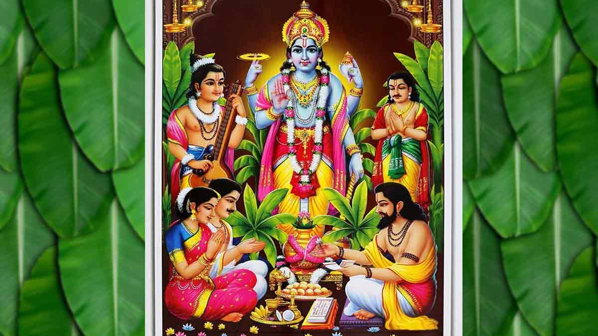 नारद म्हणाले, “ज्याचे स्वरूप, वाणी व मन यांना न कळणारे आहे व जो अनंत शक्तिमान आहे; तो उत्पत्ती, मध्य व नाश यांनी रहित आहे, मूळचा निर्गुण आहे व जगाच्या आरंभकाळी तो तीन गुणांचा स्वीकार करतो व जो सर्वांचे मूळ कारण असून भक्तांची दु:खे नाहीशी करतो त्या नारायणाला माझा नमस्कार असो.” ॥८॥ ॥९॥ नारदमुनींनी केलेली स्तुती ऎकून भगवान विष्णु नारदाजवळ बोलले. भगवान म्हणाले, “मुनिवरा, आपण कोणत्या कामासाठी आलात? तुमच्या मनात काय आहे ते सर्व मला सांगा. मी त्याचे समर्पक उत्तर देईन.” ॥१०॥ नारद म्हणाले, “हे भगवंता, मृत्युलोकातील सर्व लोक आपण केलेल्या पापकर्माप्रमाणे अनेक योनींमध्ये जन्म घेऊन विविध प्रकारची दु:खे भॊगीत आहेत.” ॥११॥ नारद म्हणाले, “हे भगवंता, आपली कृपा जर माझ्यावर असेल तर या सर्व दु:खी लोकांची सर्व दु:खे लहान अशा कोणत्या उपायांनी नाहीशी होतील ते सर्व सांगा. माझी ऎकण्यची इच्छा आहे.”॥१२॥ भगवान म्हणतात, “हे नारदा, लोकांवर कृपा करण्याच्या हेतूजे जो तू प्रश्न विचारलास तो फारच सुंदर आहे. म्हणून जे व्रत केल्याने जीवाची सर्व दु:खे नाहीशी होतात ते व्रत मी सांगतो. तू श्रवण कर. ॥१३॥ हे वत्सा नारदा, तुझ्यावर माझे प्रेम असल्यामुळे स्वर्गलोकात किंवा मनुष्यलोकात आजपर्यंत कोणालाही माहीत नसलेले व महापुण्यकारक असे व्रत आज तुला सांगतो. ॥१४॥