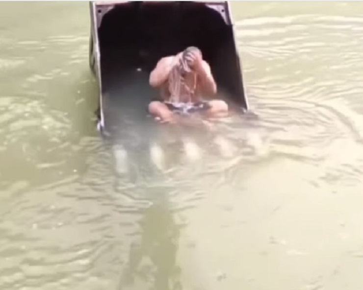 काय सांगता, इंजिनिअर ने जेसीबीत बसून अंघोळ केली, व्हिडीओ व्हायरल