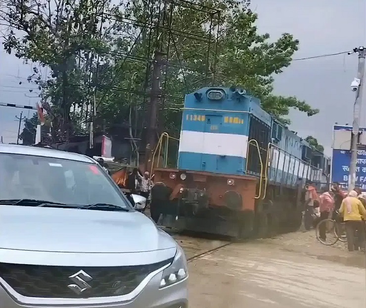 सोशल मीडियावर एक व्हिडिओ व्हायरल होत आहे. यामध्ये तुम्हाला एक ट्रेन थांबलेली दिसेल आणि तिच्या समोरून अनेक वाहने जाताना दिसत आहेत. लोको पायलट सतत हॉर्न वाजवत आहे. पण असे लोक आहेत जे माघार घेण्याचे नाव घेत नाहीत. जाम एवढा वाढला आहे की एका वाहतूक पोलिसाला तिथे यावे लागले. वाहतूक पोलिसांकडून हा जाम सुरळीत करण्यासाठी सातत्याने प्रयत्न केले जात आहेत, मात्र मोठ्या प्रमाणात जाम असल्याने वाहतूक लवकर सुरळीत होत नाही. हा व्हिडीओ बनारसचा असल्याचं सांगितलं जात आहे, जो तिथल्या ट्रॅफिकमध्ये अडकलेल्या एका व्यक्तीने कारच्या आतून बनवला होता.