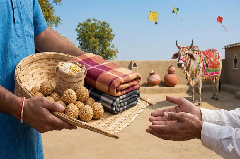 मकर संक्रांतीला तिळ, गुळ, नवीन वस्त्र, धान्य आणि गाईला चारा देणे अत्यंत शुभ मानले जाते.