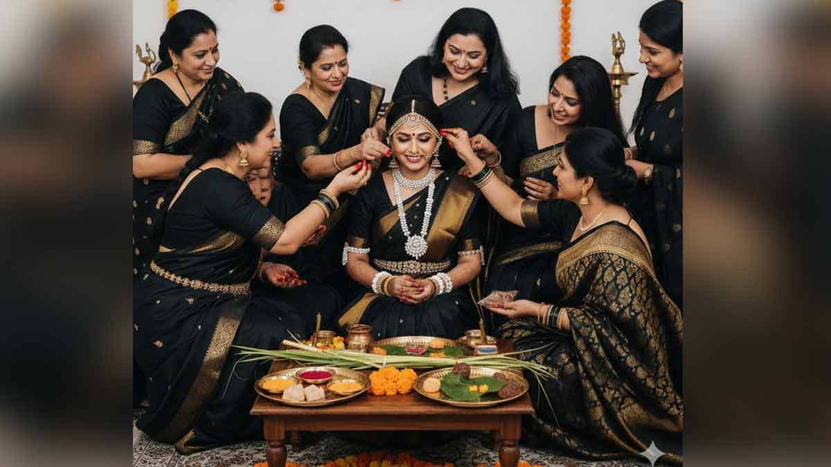 नववधूला आई-मायेने (सासू किंवा आई) काळी साडी भेट म्हणून देते. त्यावर हलव्याचे दागिने घालतात. हे दागिने गोडवा आणि सौभाग्याचे प्रतीक मानले जातात. नववधू काळ्या साडीत सजून हळदी-कुंकूचा कार्यक्रम आयोजित करते.