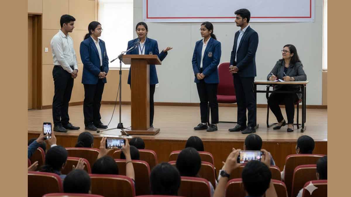 "सन्माननीय परीक्षक, उपस्थित रसिक श्रोते आणि माझ्या प्रतिस्पर्धी मित्रांनो... आज माझा मित्र म्हणाला की, सोशल मीडियाने जग जवळ आणलंय. पण मला त्याला असं विचारायचं आहे की, जग जवळ आलं खरं, पण माणसं जवळ आली का? आजच्या विषयाच्या 'विपक्ष' बाजूने उभा राहताना मी ठामपणे सांगतो की, सोशल मीडिया हे संवादाचे साधन नसून ते 'मानवी नात्यांमधील विसंवादाचे सर्वात मोठे कारण' आहे.