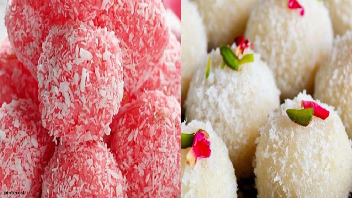 सर्वात आधी एका पॅनमध्ये तूप गरम करा आणि त्यात नारळ पावडर घाला आणि हलके परतवा.आता कंडेन्स्ड मिल्क घाला आणि चांगले मिसळा आणि ४-५ मिनिटे शिजवा. मिश्रण घट्ट होऊ लागले की, गुलाबाचे सिरप घाला आणि चांगले मिसळा. गॅस बंद करा आणि मिश्रण थोडा वेळ थंड होऊ द्या. आता हातावर तूप लावा आणि छोटे लाडू बनवा. गुलाबाच्या पाकळ्यांनी सजवा आणि नैवद्य करा.