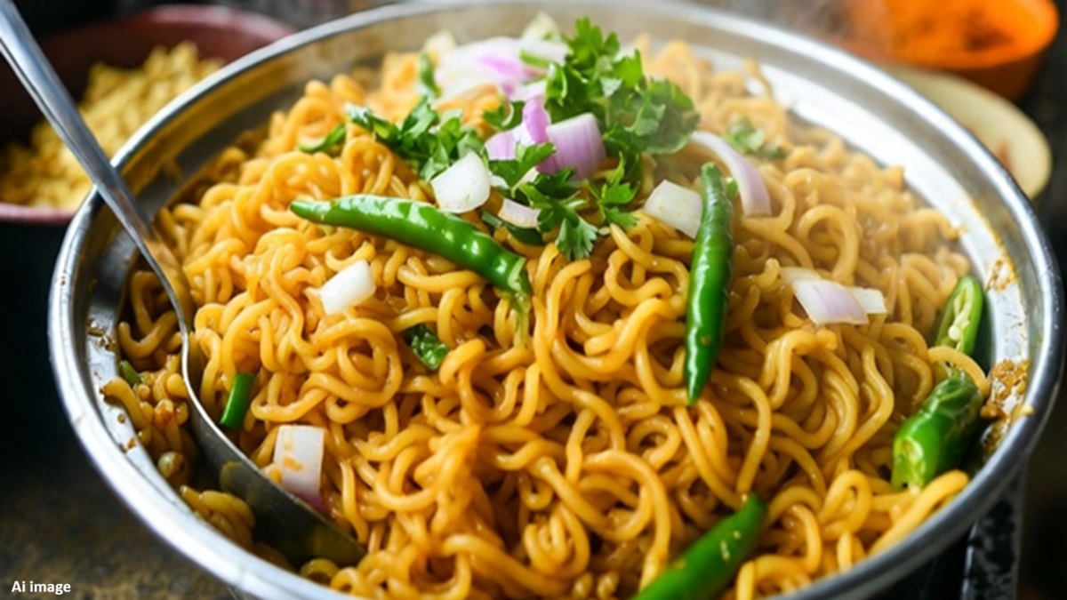 सर्वात आधी एका पॅनमध्ये पाणी घालून उकळी आणा. नंतर, मॅगीचे दोन पॅकेट फोडून घाला. तसेच, १ टेबलस्पून तेल आणि १/२ टेबलस्पून मीठ घाला. मॅगी उकळत असताना, ती मऊ झाली की, ती गाळून घ्या, त्यावर थंड पाणी घाला आणि बाजूला ठेवा.