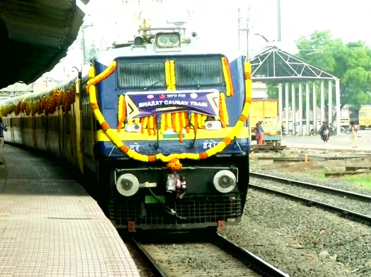 भारत गौरव योजने अंतर्गत देशातील पहिली खासगी रेल्वे शिर्डी साईनगर रेल्वे स्टेशनवर पोहचली. मंगळवारी कोईम्बतूर येथून या साऊथ स्टार रेल्वेला हिरवा झेंडा दाखवण्यात आला होता. 830 प्रवासी घेवून सकाळी निर्धारित वेळेच्या एक तास आधीच ही रेल्वे शिर्डीत दाखल झाली आहे. या रेल्वेने आलेल्या प्रवाशांचे यावेळी स्वागत करण्यात आले.