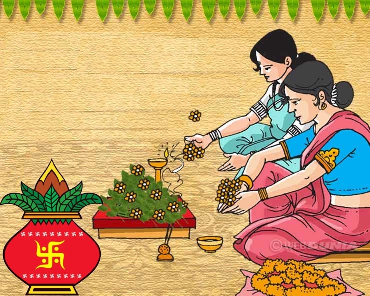 भोजनसमारंभ झाला. मामाभाचे सून घेऊन घरी आले. सासूनं सुनेचे पाय धरले. तुझ्यामुळं माझा मुलगा वाचला, असं म्हणाली. तिनं सांगितलं, मला मंगळागौरीचं व्रत असतं, ही सगळी तिची कृपा! सासरमाहेरची घरचीदारची माणसं सर्व एकत्र जाली आणि त्या व्रताचं उद्यापन केलं, मंगळागौर तिला प्रसन्न झाली, तशी तुम्हां आम्हां होवो, आणि आपलं सौभाग्य अखंड राहो, इतकीच देवाची प्रार्थना करा. ही धर्मराजाला कृष्णानं सांगितलेली साठा उत्तरांची कहाणी पाचा उत्तरी सुफळ संपूर्ण.