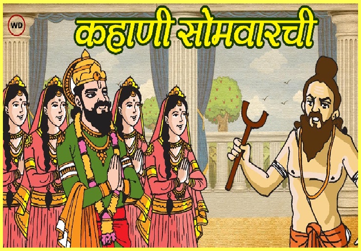 पुढं काय झालं? ऋषी दुसर्या राणीकडे वळले. तिला विचारलं तू का गं भांडतेस? ती म्हणाली, मीच का स्वयंपाकीण व्हावं? ह्याचं मला कारण सांगा. ऋषींनी अंतर्ध्यान लावलं. कारण शोधून काढलं. ते म्हणाले, बाई बाई, आदल्या जन्मी तू एक गरीब ब्राह्मणाची बायको होतीस. कोरान्न मागत असीस. तेव्हा दर सोमवारी उपास करीस, भिक्षेला जास, पाचच घरी कोरान्न मागस, त्याचा स्वयंपाक करुन महादेवाला नैवेद्य दाखवीस. ही भक्ती देवाला आवडली. त्यानं तुला राजाची राणी केली. राजानं तुला हे काम लावून दिलं, ते तू मान्य कर. सगळ्यांना जेवू घाल. सगळ्यांचाच आत्मा थंड कर, म्हणजे तुझं व्रत पुरं होईल. मनोभावे राजाची सेवा कर म्हणजे ती शंकरास पावेल. अंती तुला कैलास लाभेल, असा तिला आशीर्वाद दिला. राणीनं ऐकलं व ती सुखासमाधानानं वागू लागली.